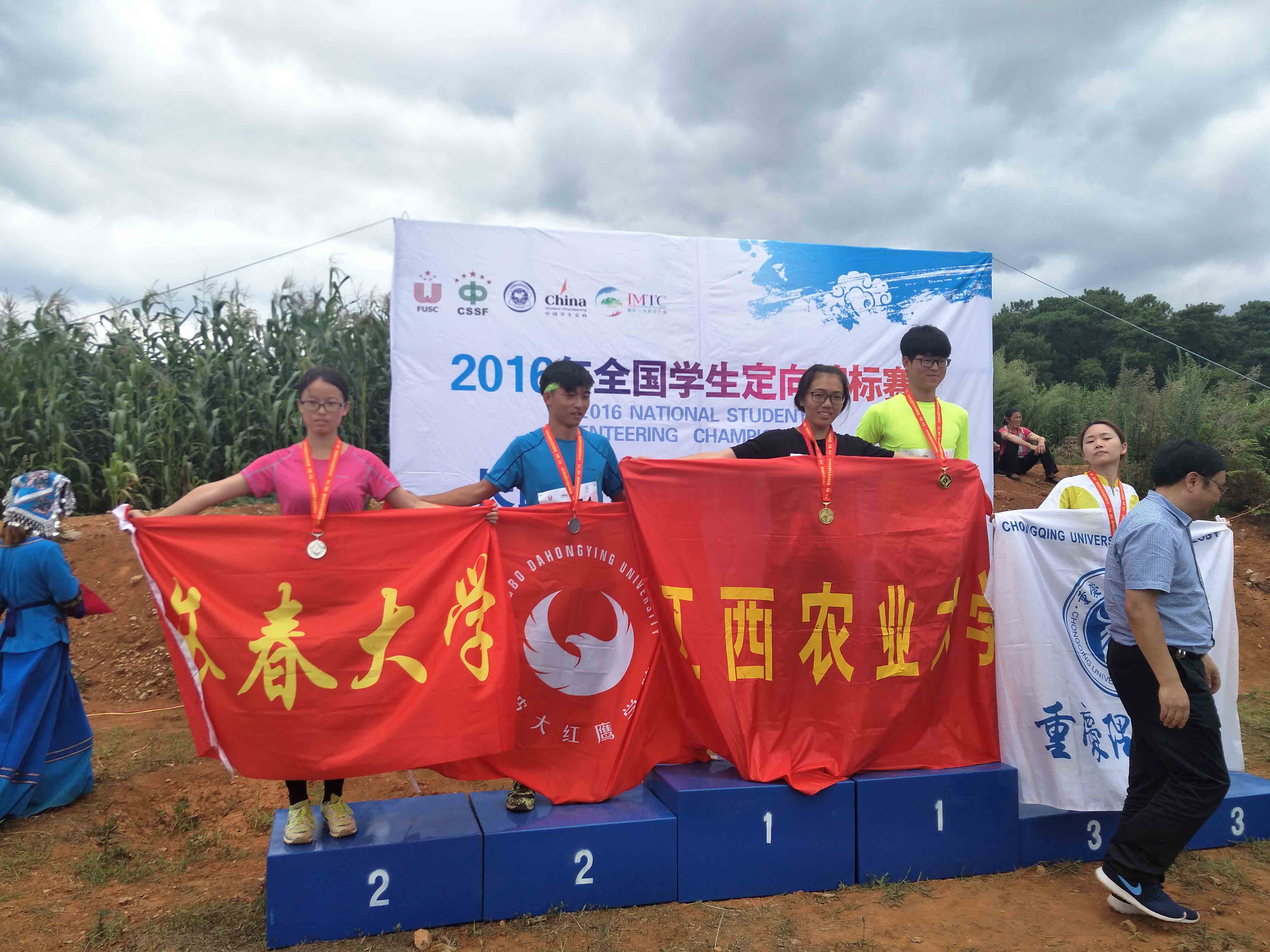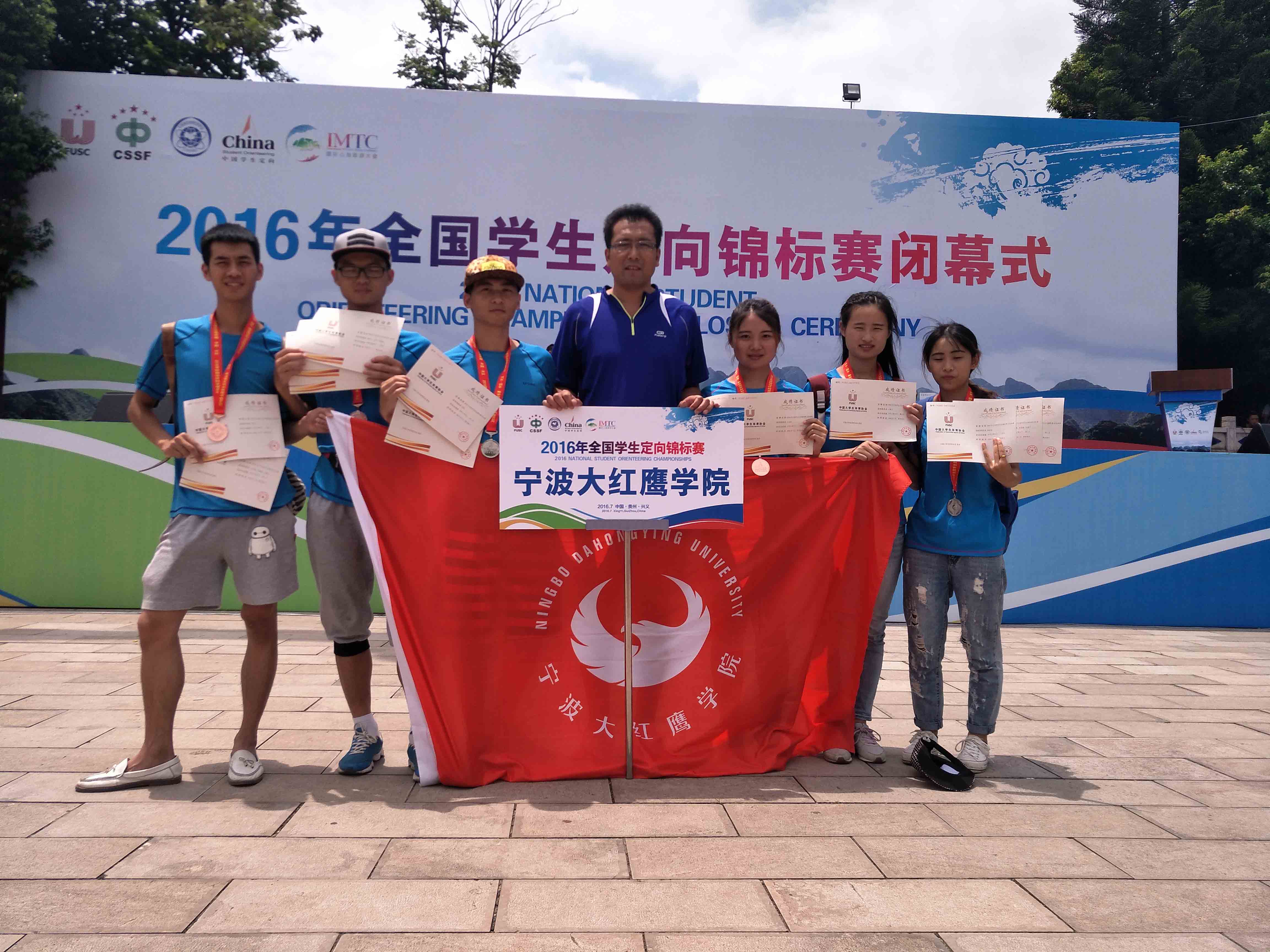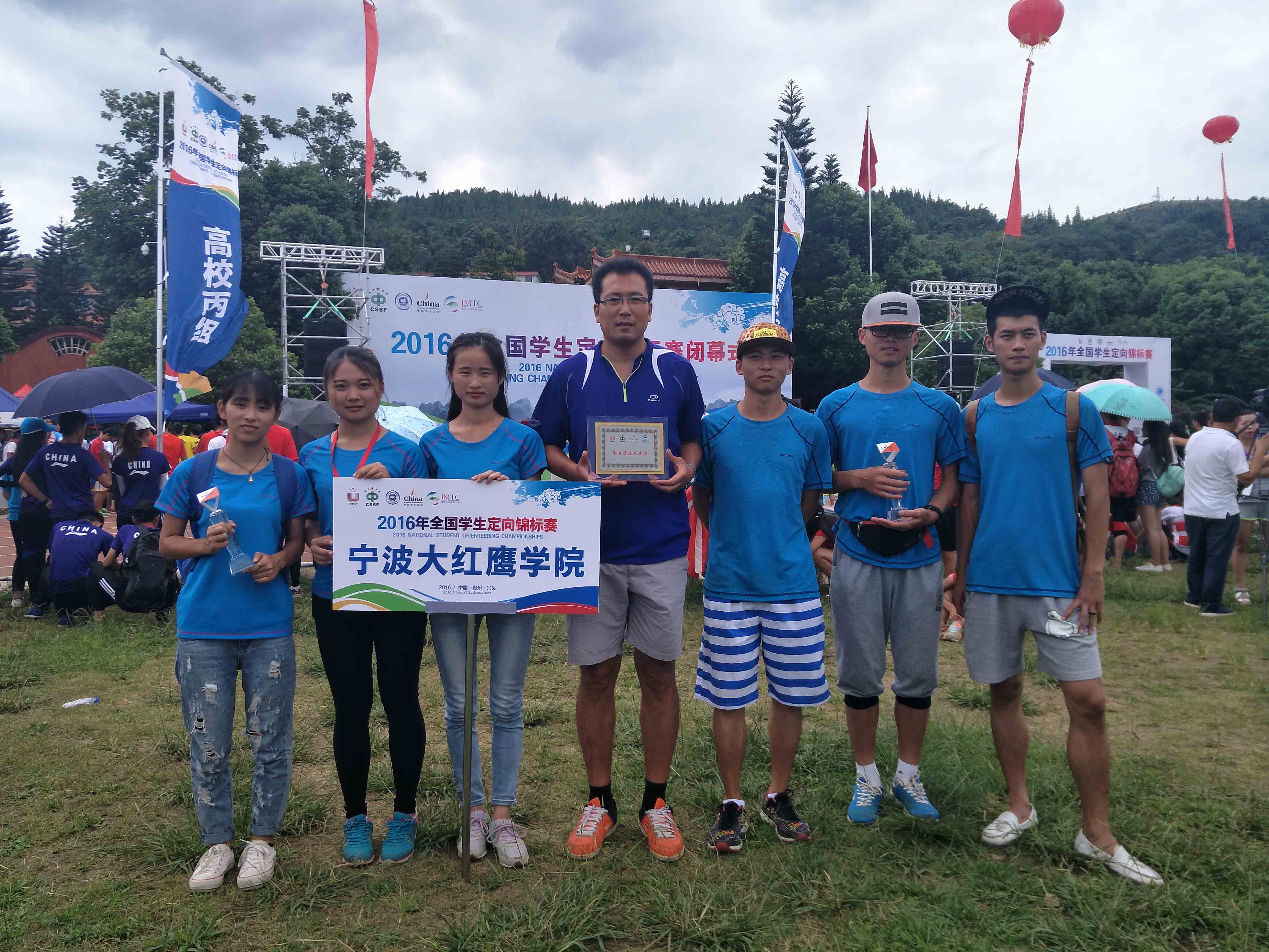 近日,在中国大学生体育协会主办的2016全国学生定向比赛中,我校由邢立付老师指导的定向运动代表队取得优异成绩,我校在本届比赛中获得“体育道德风尚奖”,邢立付被评为“优秀教练员”,毛慧平同学被评为“优秀运动员”等荣誉称号。其中,倪轲同学荣获本科男子乙组积分赛第二名、短距离赛第三名,陈晶晶同学荣获本科女子乙组短距离赛第二名,许佳燕、陈晶晶、毛慧平荣获团队赛第三名,女子团体总分第三名,团体总分第五名。