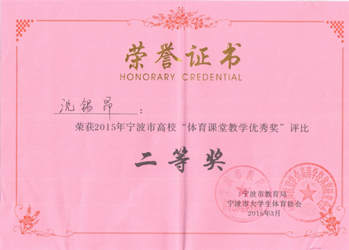 沈锡昂老师荣获宁波市高校“体育课堂教学优秀奖”评比二等奖