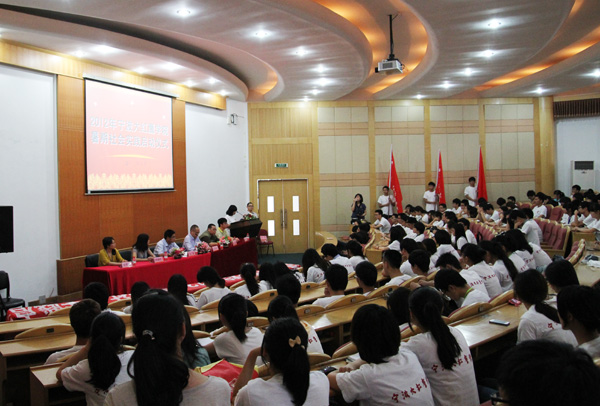 学生代表潘一萍在发言中表示,将牢记今年暑期社会实践“举团旗跟党走,践行社会主义核心价值体系”的主题,不忘使命坚决完成任务。