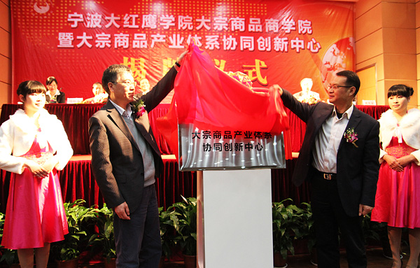 徐芳权董事长在致辞中强调,十一年前,宁波大红鹰教育集团以“不求任何经济回报,只求回报社会”为宗旨,创办了宁波大红鹰学院,并实现了从高职教育向本科教育的跨越。他指出,面向区域经济和社会发展需求,不断深化产学研相结合,在服务社会中推进教育教学改革与创新、形成办学特色、提升办学质量和水平,始终是学校的办学方向和目标。此次成立大宗商品商学院及组建协同创新中心,正是积极落实浙江和宁波海洋经济发展战略的具体表现,也是推进学校体制机制改革、人才培养模式改革、政产学研合作机制改革与创新的重要举措。他表示,在社会各界的大力支持和帮助下,大宗商品商学院和协同创新中心将努力为浙江省和宁波市海洋经济发展做出应有的贡献。