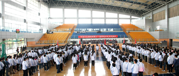 仪式后,举行了本届体育文化节男子篮球赛的首场比赛。经过激烈角逐,机电学院男篮队以38:35险胜高职学院男篮队。