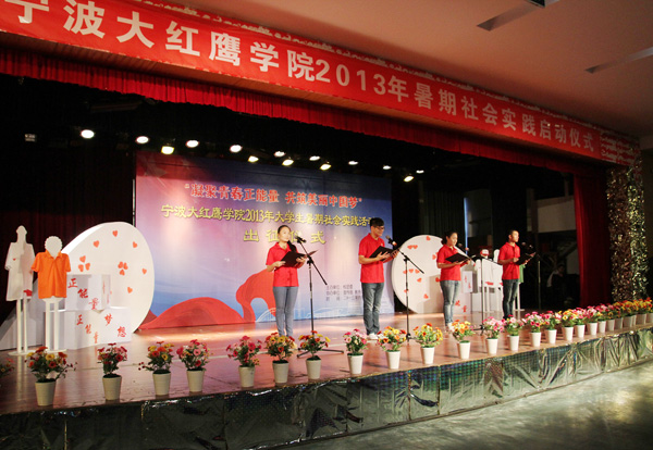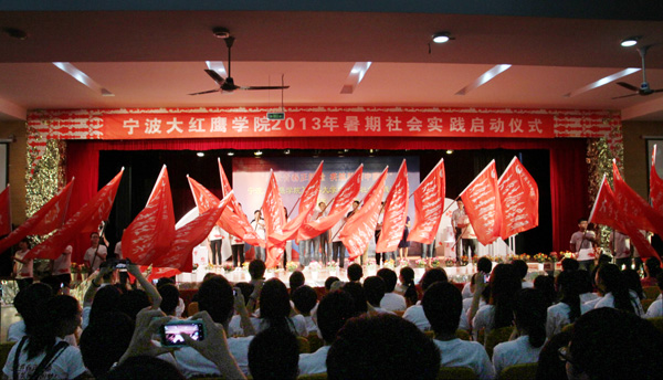 6月28日下午,伴着琅琅朗诵声,我校以“凝聚青春正能量,共筑美丽中国梦”为主题的2013年暑期大学生社会实践出征仪式正式举行。