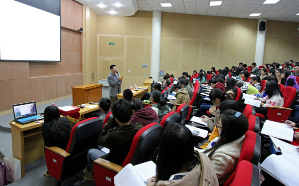 张海军先生通过对“人生不选择眉毛上的汗水,就只有眉毛下的泪水”、“娇生惯养以致堕落”、“没上过大学却很成功”、“拥有技术之下的巨大优势”等四部分内容的精彩阐述,与师生一起畅谈人生梦想、分享职场心得。他结合自己碰到的几个真实小故事特别强调,如今的社会不再仅仅看重学历,而对能力的要求则日益提高。接着,他以德国知名品牌为例阐述了技术在品牌发展及个人职业发展中的重要性。在谈到初入职场时,他表示,只要每天都努力工作,就算有过错也没关系,努力才是最重要的。他希望广大同学以极大的热情、远大的理想和清晰的目标去实现自己的梦想,并鼓励大家在今后的职场道理上不断奋斗、不断前进。