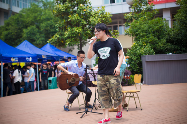 21日中午,在社团文化广场,各协会已经在指定位置张贴了海报、摆好了桌子和音响等设备。各社团可谓争奇斗艳,各显神通。红鹰TV社的汉字英雄游戏、诸神黄昏动漫社的捞金鱼比赛、棋奕协会的“真人飞行棋”、美食协会与DIY协会的美食DIY、广角摄影协会的“抢镜王”游戏、心理协会的心理健康测试、创新协会的“一站到底”等,无一不让同学们争相围观。除文艺、游戏表演外,轮滑协会的花样轮滑、街舞协会的即兴表演、排球协会的球技展示、羽毛球协会的双人对打等也纷纷上阵,赚足了同学们的眼球。整个现场呈现出一派百花争艳的热闹景象。