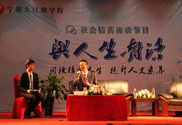 4月18日下午,由我校团委主办、红鹰TV社承办的第二期“与人生对话”访谈节目在信息楼报告厅举行。本次访谈节目的特邀嘉宾为浙大副教授阮俊华老师。共青团宁波市委副书记方晴、海曙区团委副书记林景,兄弟高校的团委负责人与我校各级团干、400余名学生一同参加了本次活动。