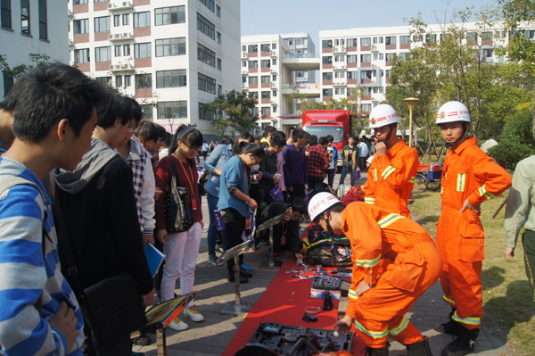 仪式上,我校杭州湾校区管委办主任李向东首先简要介绍了本次活动举行的意义和目的,并对杭州湾新区管委会、慈溪消防大队等单位多年来给予我校区消防安全工作的关心和帮助表示感谢。他说,仪式的举行是一件非常有意义的好事,不仅体现了杭州湾新区、慈溪消防大队对我校消防工作的重视和关心,同时也是体现我校以人为本的办学理念。每个大学生都有必要且有责任学习和掌握消防的基本知识和技能。
