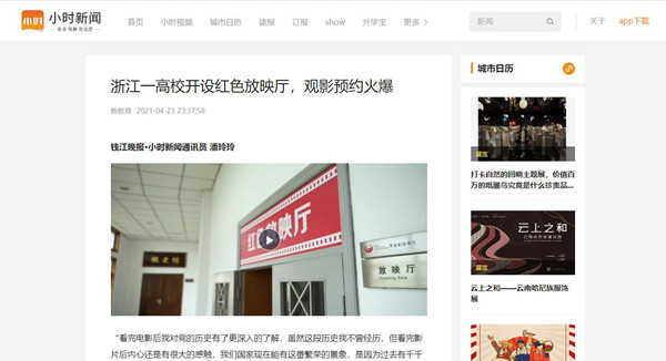 【钱江晚报】宁波财经学院开设红色放映厅,观影预约火爆