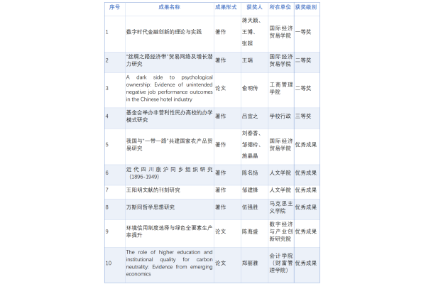 本次获奖成果覆盖面广、学科特色鲜明,深度覆盖数字金融、国际贸易、高等教育、历史、哲学等多个研究领域,既体现了哲学社会科学各学科的独立发展深度,也彰显了跨领域研究的融合创新活力。