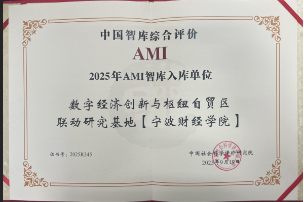 近日,中国社会科学评价研究院公布《2025年AMI智库入库单位》名单,我校数字经济创新与枢纽自贸区联动研究基地成功入选。此次入选是国家级权威机构对基地建设成效的高度肯定,更是学校科研实力与学科特色的集中体现。