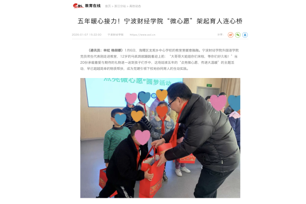 【中国教育在线】五年暖心接力!宁波财经学院“微心愿”架起育人连心桥