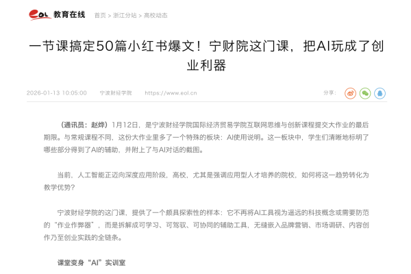 【中国教育在线】一节课搞定50篇小红书爆文!宁财院这门课,把AI玩成了创业利器