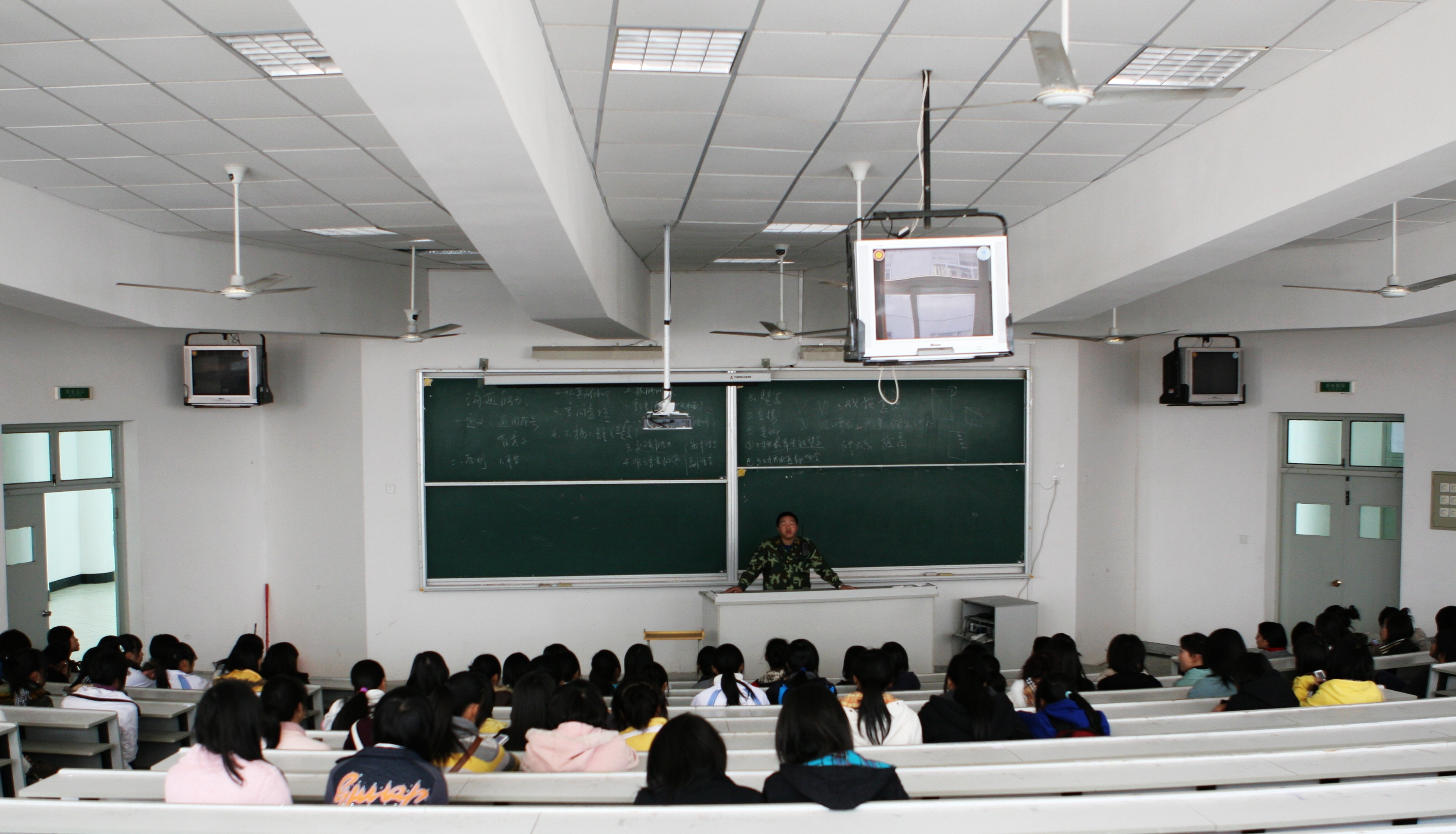 本次参加演练的人员主要为学生辅导员、宿管员、学生宿舍各楼层层长、寝室长及各安全重点部位岗位负责人等,同时,还邀请了6名高桥镇消防中队的消防队员现场指导,参加人数之多、涵盖范围之广为历次演练活动之最。演练的主要内容为灭火器灭火及发生火灾后如何逃生自救。首先,由消防队员为参演人员讲解灭火器的使用方法及火场自救逃生常识,然后组织者将参演人员分为3人一组依次进行实战灭火演练,最后,参加演练的师生被安排在阶梯教室进行火场自救逃生演练。