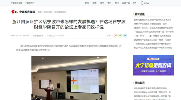 【中国教育在线】浙江自贸区扩区给宁波带来怎样的发展机遇?在这场在宁波财经学院召开的论坛上专家们这样说