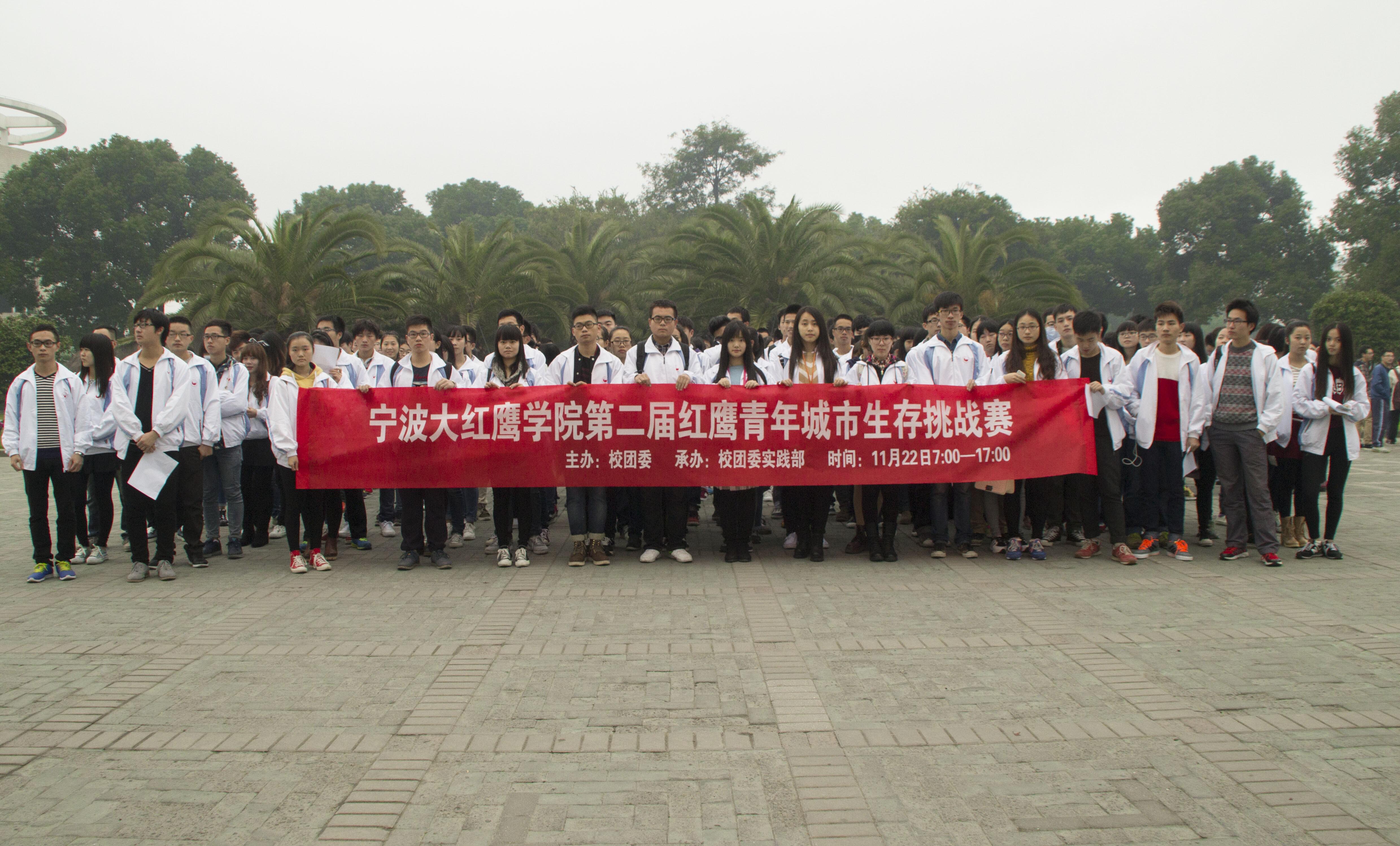 11月22日上午7时,伴随着薄薄的晨雾,我校第二届红鹰青年城市生存挑战赛的参赛队伍在学校东一门门口整装待发。本次挑战赛吸引了28支团队,共计202名大学生参与,经过学生督导代表的宣誓与校团委副书记陈剑老师的安全动员后,伴随着“比赛正式开始”的声音,本次城市生存挑战赛正式出征。