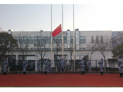 晨会于庄严的升国旗仪式中开始,全体师生列队肃立,向国旗行注目礼。